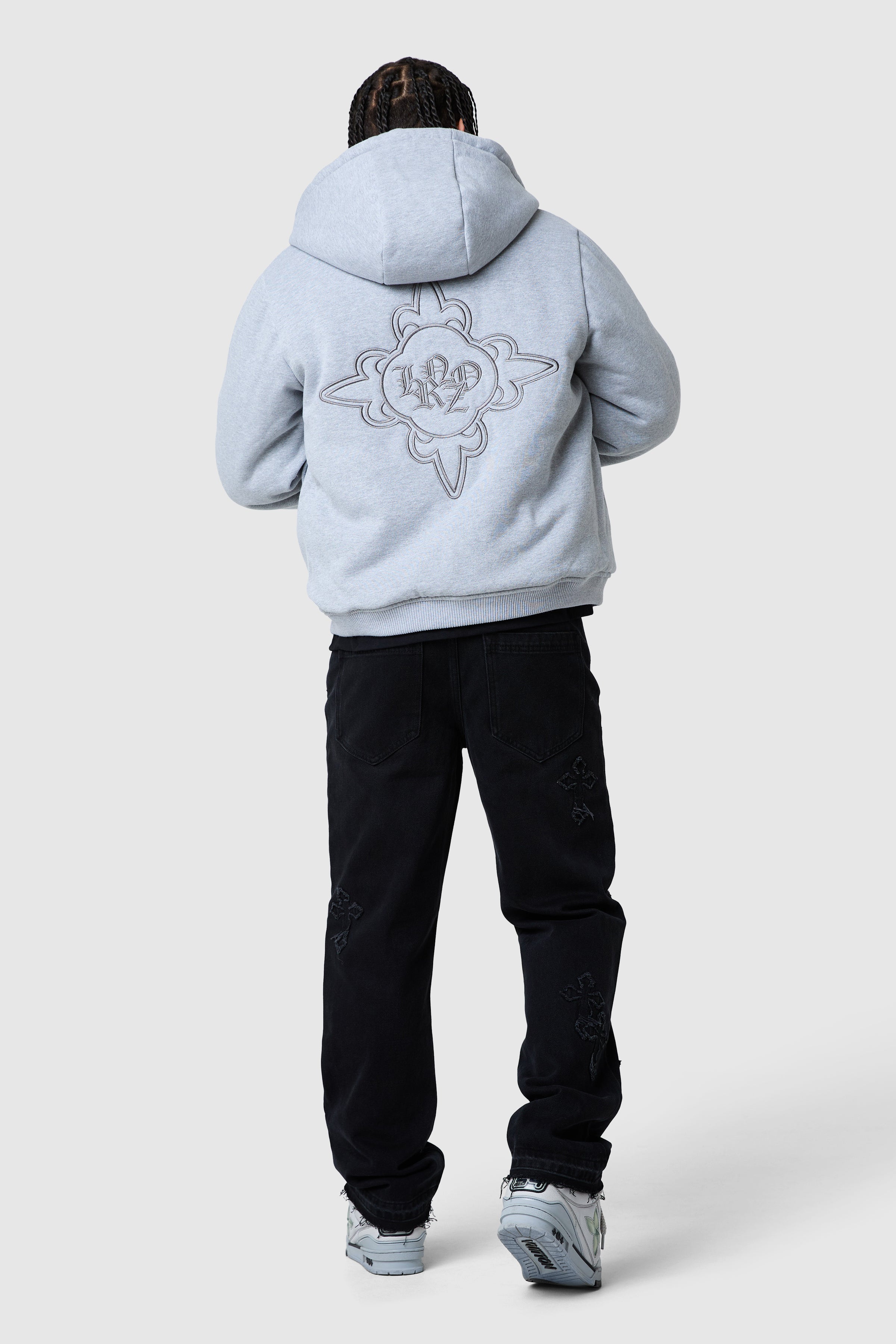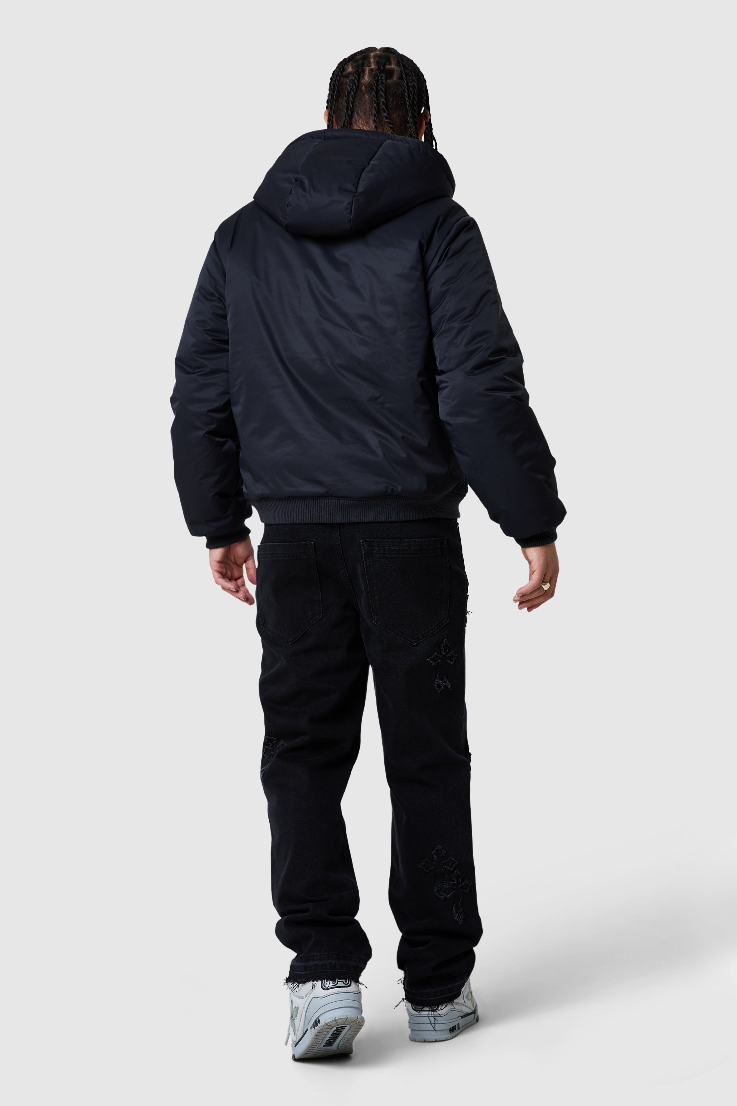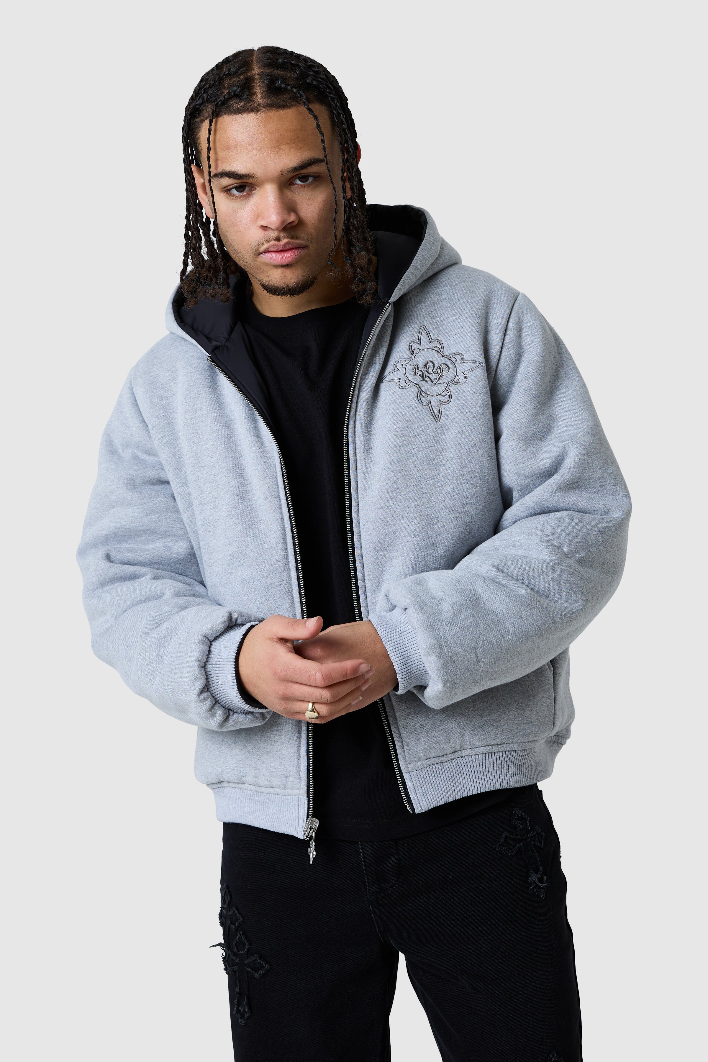 A versatile statement jacket designed for style and function. The Icon Reversible Jacket features embroidery on both sides, with a back appliqué on the grey side for added detail. Equipped with a hood, pockets on both sides, and a branded Icon metal reversible puller, it offers effortless adaptability for any outfit.