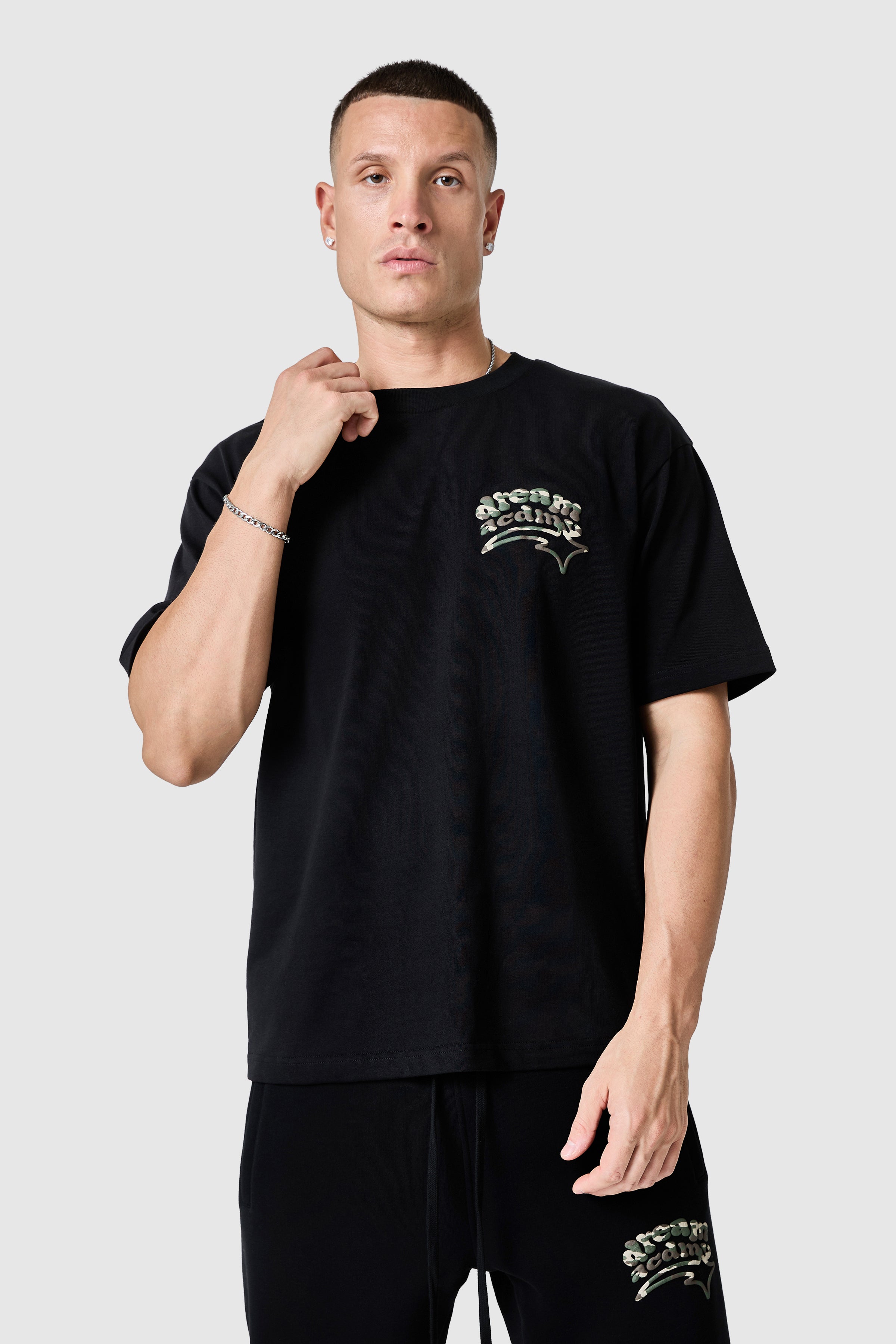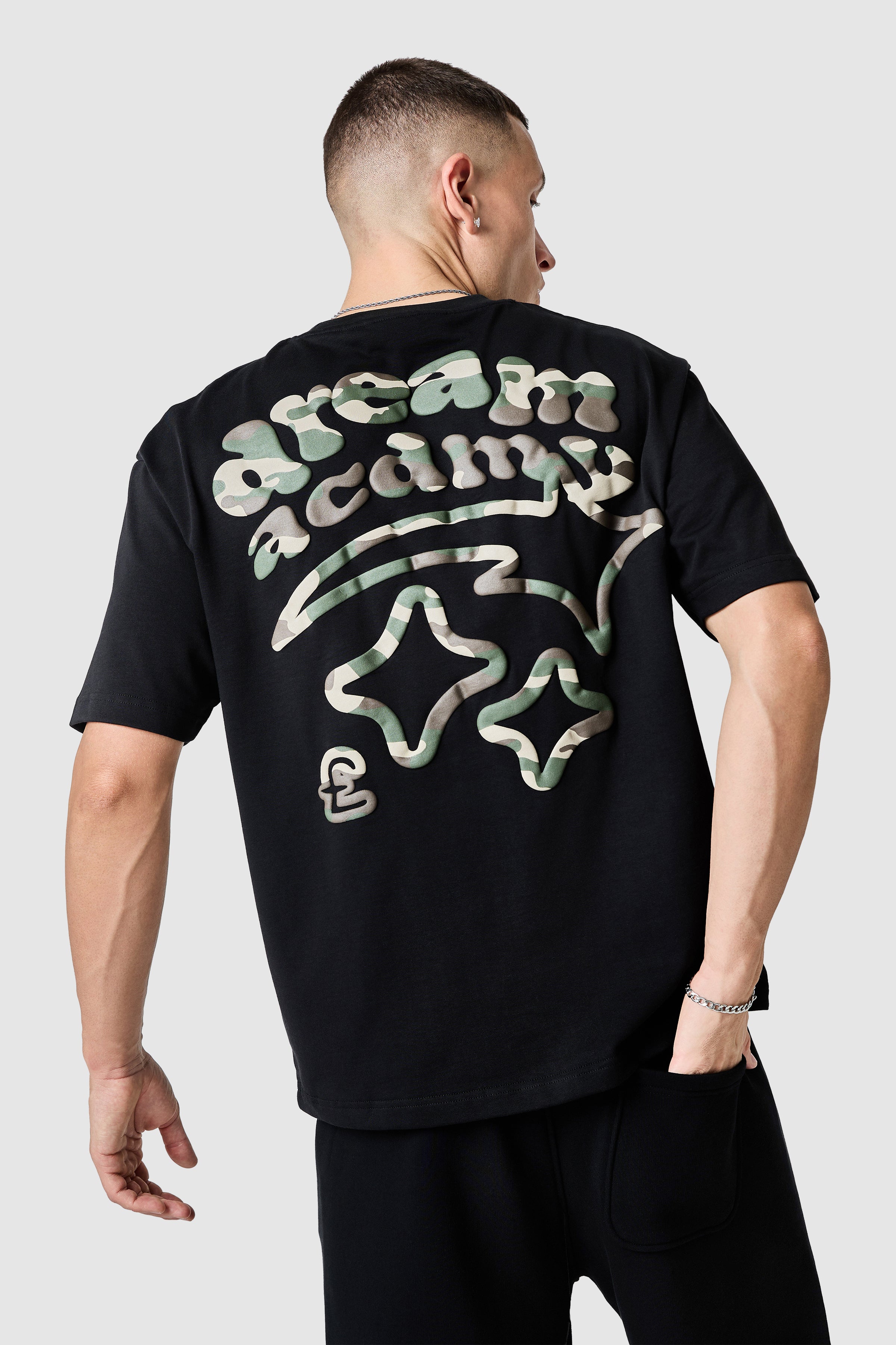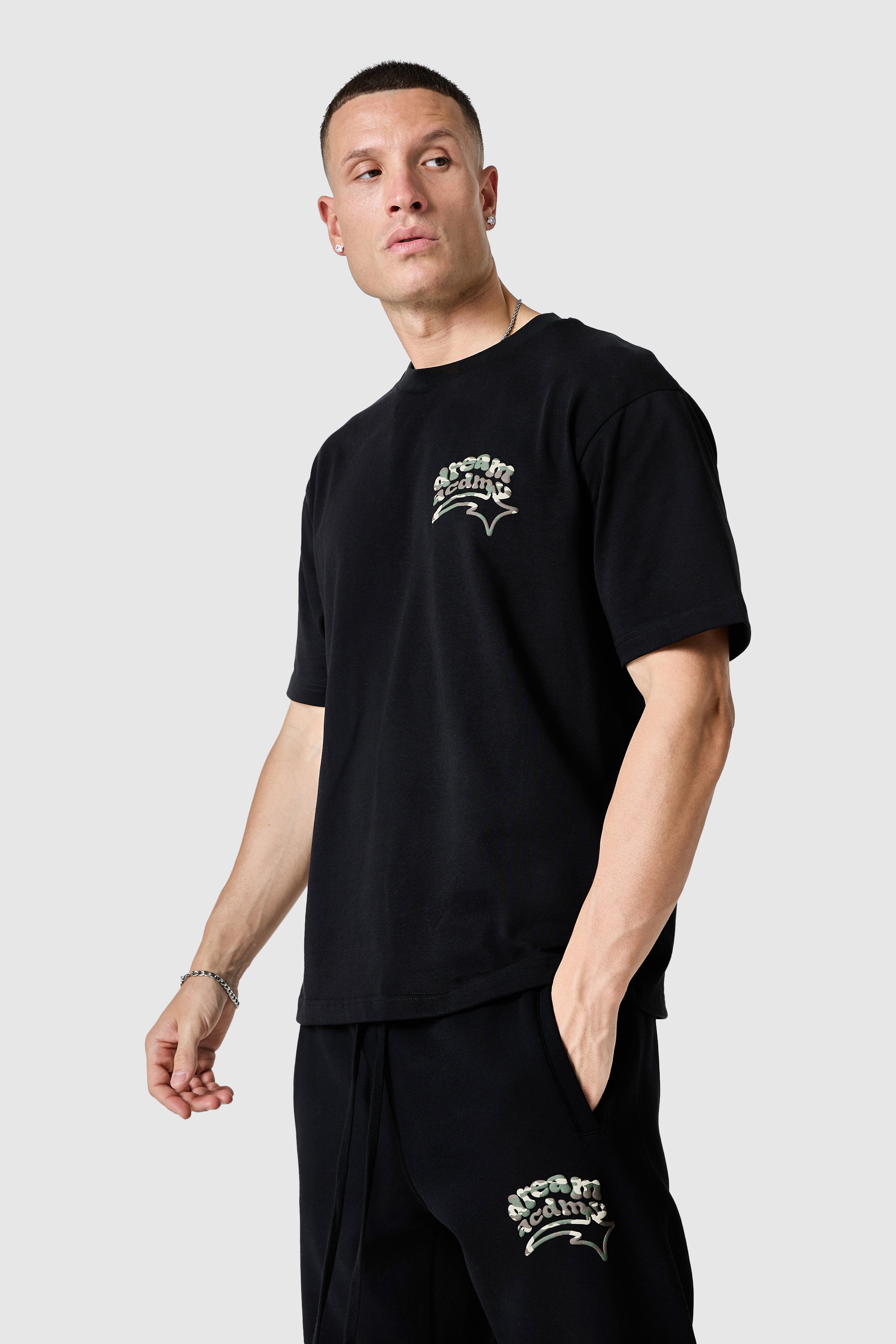 A relaxed silhouette with a dropped shoulder, the Camo Dream Acdmy Tee features front and back graphic prints that define its statement identity. Complete the look with the matching relaxed Jogger.